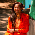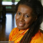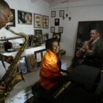 Alice Coltrane next to her religious shrine, with the portrait of her "guru" Satya Sai Baba. She explored the meditation ways since 1978 and she founded an Ashram, of which she is the spiritual guide, playing music only for her community and her children, who are all musicians. (Photo by J. Emilio Flores/Corbis via Getty Images)