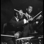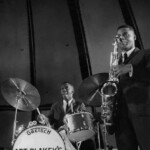Blakey made a name for himself in the 1940s in the big bands of Fletcher Henderson and Billy Eckstine. He then worked with bebop musicians Thelonious Monk, Charlie Parker, and Dizzy Gillespie. In the mid-1950s, Horace Silver and Blakey formed the Jazz Messengers, a group that the drummer was associated with for the next 35 years. The group was formed as a collective of contemporaries, but over the years the band became known as an incubator for young talent, including Freddie Hubbard, Wayne Shorter, Lee Morgan, Benny Golson, Kenny Dorham, Hank Mobley, Donald Byrd, Jackie McLean, Johnny Griffin, Curtis Fuller, Chuck Mangione, Chick Corea, Keith Jarrett, Cedar Walton, Woody Shaw, Terence Blanchard, and Wynton Marsalis. The Biographical Encyclopedia of Jazz calls the Jazz Messengers “the archetypal hard bop group of the late 50s.