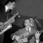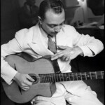 With violinist Stéphane Grappelli, Reinhardt formed the Paris-based Quintette du Hot Club de France in 1934. The group was among the first to play jazz that featured the guitar as a lead instrument.[5] Reinhardt recorded in France with many visiting American musicians, including Coleman Hawkins and Benny Carter, and briefly toured the United States with Duke Ellington’s orchestra in 1946. He died suddenly of a stroke in 1953 at the age of 43.