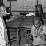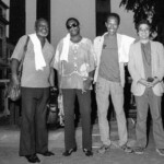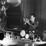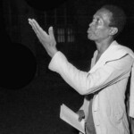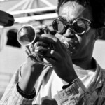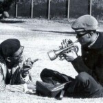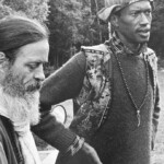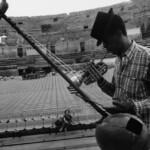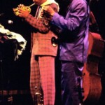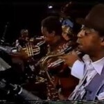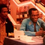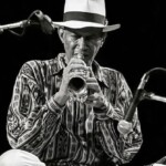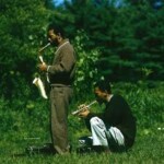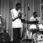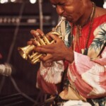 Don Cherry (center) and the Brazilian percussionist Naná Vasconcelos (right) at the Châteauvallon jazz festival, France, 1972