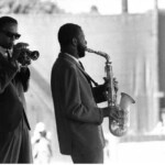 17th November 1959: Ornette Coleman plays the saxophone and Don Cherry (1936-1995) plays the trumpet at the 5 Spot Cafe, New York City. Bob Parent/Hulton Archive/Getty Images