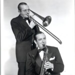 (Original Caption) Portrait of Tommy Dorsey playing trombone. Undated photograph. (Photo by George Rinhart/Corbis via Getty Images)