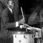 Most famously a member of John Coltrane’s quartet, with whom he recorded from late 1960 to late 1965, Jones appeared on such albums as My Favorite Things, A Love Supreme, Ascension and Live at Birdland. After 1966, Jones led his own trio, and later larger groups under the name The Elvin Jones Jazz Machine. His brothers Hank and Thad were also celebrated jazz musicians with whom he occasionally recorded. Elvin was inducted into the Modern Drummer Hall of Fame in 1995. In his The History of Jazz, jazz historian and critic Ted Gioia calls Jones “one of the most influential drummers in the history of jazz.” He was also ranked at Number 23 on Rolling Stone magazine’s “100 Greatest Drummers of All Time”.