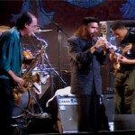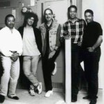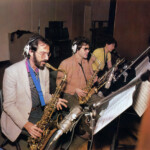 This August 2006 photo provided by Darryl Pitt, shows, from left, Jack DeJohnette, Michael Brecker, Gil Goldstein and Herbie Hancock watching a little movie during a break at the sessions in New York for recording Brecker's "Pilgrimage." (AP Photo/Darryl Pitt)