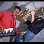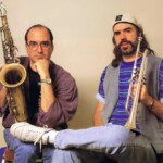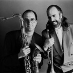 Saxophonist Michael Brecker (1949-2007) on left and trumpet player Randy Brecker of The Brecker Brothers perform live on stage together in the United States circa 1995. (Photo by Michael Putland/Getty Images)