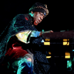Le Sony’r Ra (born Herman Poole Blount, May 22, 1914 – May 30, 1993), better known as Sun Ra, was an American jazz composer, bandleader, piano and synthesizer player, and poet known for his experimental music, “cosmic” philosophy, prolific output, and theatrical performances. For much of his career, Ra led “The Arkestra”, an ensemble with an ever-changing name and flexible line-up.